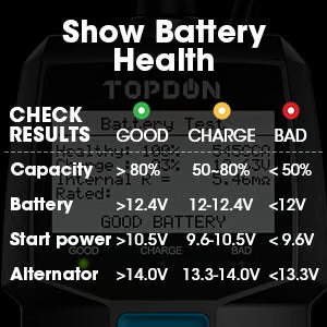 Uwaga: dla akumulatorów 12 V (100–2000 CCA). Minimalne wykrywalne napięcie: 4 V.